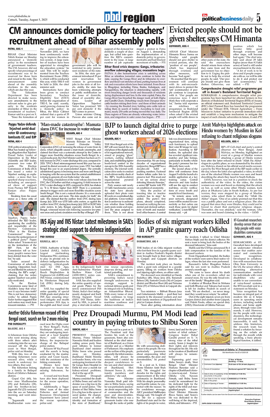 PbdOdisha ePaper Page: 5 August 05, 2025 3 4 5 6 Page 1Page 2Page 3Page 4Page 5Page 6Page 7Page 8Page 9Page 10Page 11Page 12 × PbdOdisha ePaper Page 1Page 2Page 3Page 4Page 5Page 6Page 7Page 8Page 9Page 10Page 11Page 12 << First << 5 >> Last >> Page no 1Page no 2Page no 3Page no 4Page no 5Page no 6Page no 7Page no 8Page no 9Page no 10Page no 11Page no 12