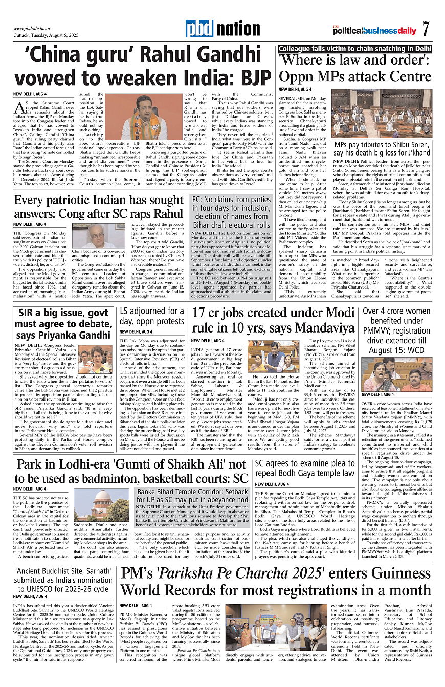 PbdOdisha ePaper Page: 7 August 05, 2025 5 6 7 8 Page 1Page 2Page 3Page 4Page 5Page 6Page 7Page 8Page 9Page 10Page 11Page 12 × PbdOdisha ePaper Page 1Page 2Page 3Page 4Page 5Page 6Page 7Page 8Page 9Page 10Page 11Page 12 << First << 7 >> Last >> Page no 1Page no 2Page no 3Page no 4Page no 5Page no 6Page no 7Page no 8Page no 9Page no 10Page no 11Page no 12