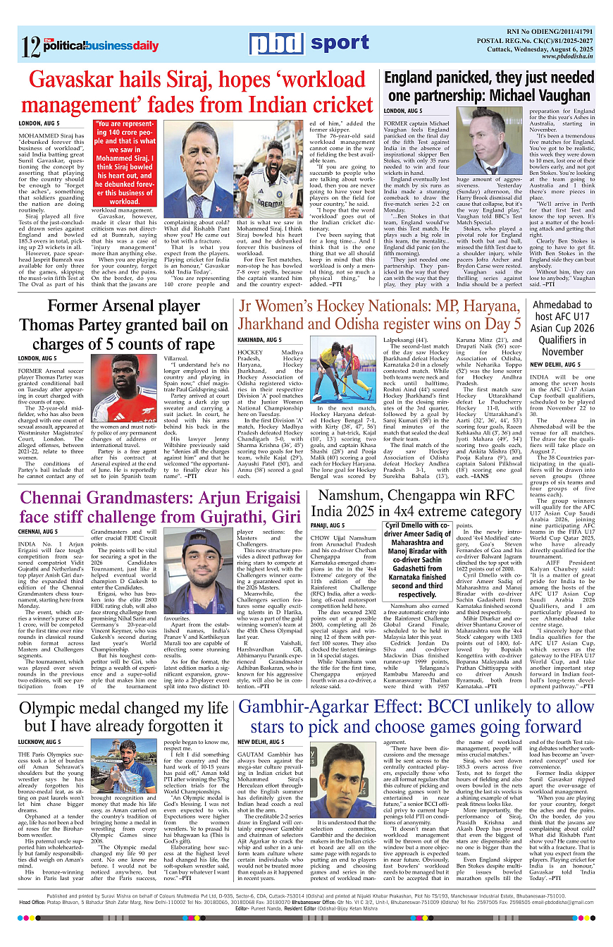 PbdOdisha ePaper Page: 12 August 06, 2025 9 10 11 12 Page 1Page 2Page 3Page 4Page 5Page 6Page 7Page 8Page 9Page 10Page 11Page 12 × PbdOdisha ePaper Page 1Page 2Page 3Page 4Page 5Page 6Page 7Page 8Page 9Page 10Page 11Page 12 << First << 12 >> Last >> Page no 1Page no 2Page no 3Page no 4Page no 5Page no 6Page no 7Page no 8Page no 9Page no 10Page no 11Page no 12