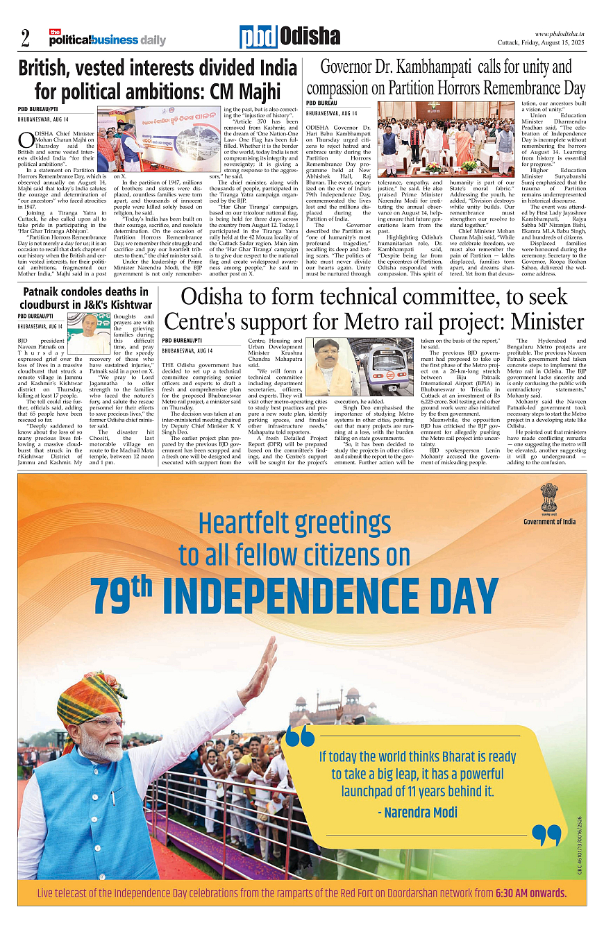 PbdOdisha ePaper Page: 2 August 15, 2025 1 2 3 4 Page 1Page 2Page 3Page 4Page 5Page 6Page 7Page 8Page 9Page 10Page 11Page 12 × PbdOdisha ePaper Page 1Page 2Page 3Page 4Page 5Page 6Page 7Page 8Page 9Page 10Page 11Page 12 << First << 2 >> Last >> Page no 1Page no 2Page no 3Page no 4Page no 5Page no 6Page no 7Page no 8Page no 9Page no 10Page no 11Page no 12
