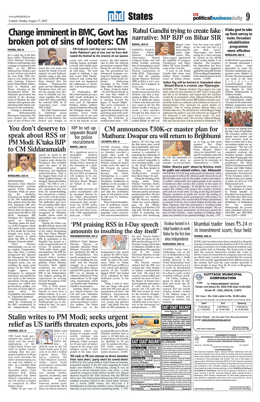 PbdOdisha ePaper Page: 9 August 17, 2025 7 8 9 10 Page 1Page 2Page 3Page 4Page 5Page 6Page 7Page 8Page 9Page 10Page 11Page 12 × PbdOdisha ePaper Page 1Page 2Page 3Page 4Page 5Page 6Page 7Page 8Page 9Page 10Page 11Page 12 << First << 9 >> Last >> Page no 1Page no 2Page no 3Page no 4Page no 5Page no 6Page no 7Page no 8Page no 9Page no 10Page no 11Page no 12