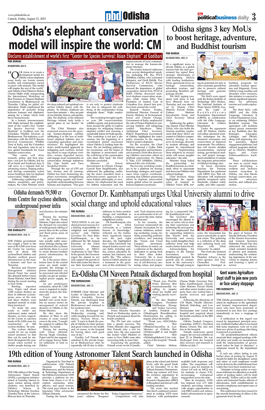 PbdOdisha ePaper Page: 3 August 22, 2025 1 2 3 4 Page 1Page 2Page 3Page 4Page 5Page 6Page 7Page 8Page 9Page 10Page 11Page 12 × PbdOdisha ePaper Page 1Page 2Page 3Page 4Page 5Page 6Page 7Page 8Page 9Page 10Page 11Page 12 << First << 3 >> Last >> Page no 1Page no 2Page no 3Page no 4Page no 5Page no 6Page no 7Page no 8Page no 9Page no 10Page no 11Page no 12