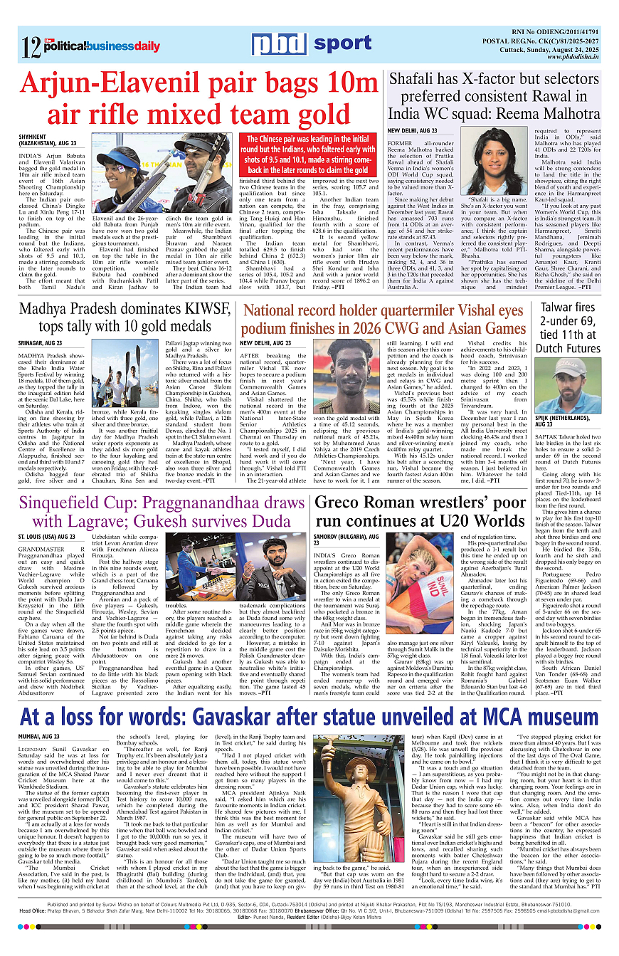 PbdOdisha ePaper Page: 12 August 24, 2025 9 10 11 12 Page 1Page 2Page 3Page 4Page 5Page 6Page 7Page 8Page 9Page 10Page 11Page 12 × PbdOdisha ePaper Page 1Page 2Page 3Page 4Page 5Page 6Page 7Page 8Page 9Page 10Page 11Page 12 << First << 12 >> Last >> Page no 1Page no 2Page no 3Page no 4Page no 5Page no 6Page no 7Page no 8Page no 9Page no 10Page no 11Page no 12