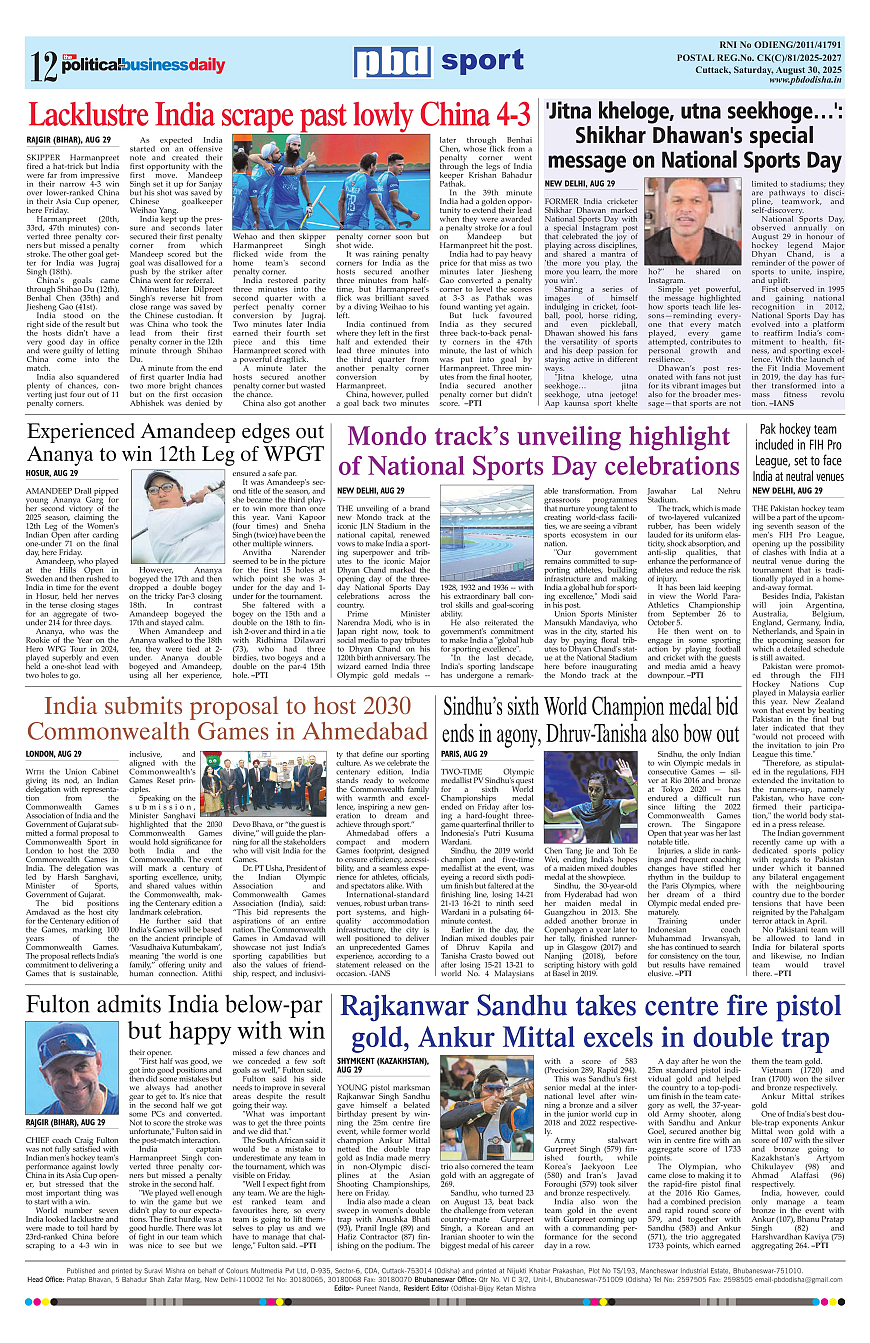 PbdOdisha ePaper Page: 12 August 30, 2025 9 10 11 12 Page 1Page 2Page 3Page 4Page 5Page 6Page 7Page 8Page 9Page 10Page 11Page 12 × PbdOdisha ePaper Page 1Page 2Page 3Page 4Page 5Page 6Page 7Page 8Page 9Page 10Page 11Page 12 << First << 12 >> Last >> Page no 1Page no 2Page no 3Page no 4Page no 5Page no 6Page no 7Page no 8Page no 9Page no 10Page no 11Page no 12