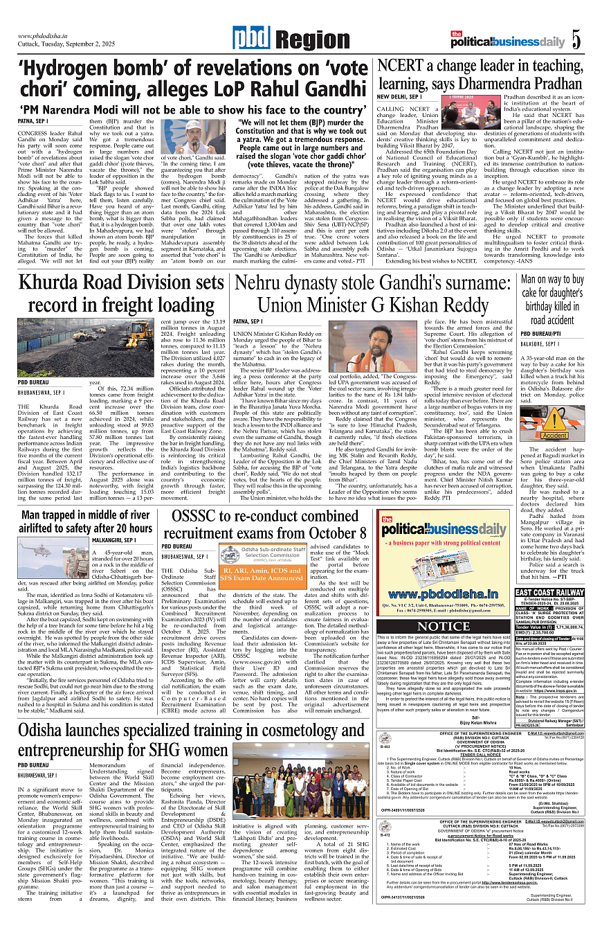 PbdOdisha ePaper Page: 5 September 02, 2025 3 4 5 6 Page 1Page 2Page 3Page 4Page 5Page 6Page 7Page 8Page 9Page 10Page 11Page 12 × PbdOdisha ePaper Page 1Page 2Page 3Page 4Page 5Page 6Page 7Page 8Page 9Page 10Page 11Page 12 << First << 5 >> Last >> Page no 1Page no 2Page no 3Page no 4Page no 5Page no 6Page no 7Page no 8Page no 9Page no 10Page no 11Page no 12