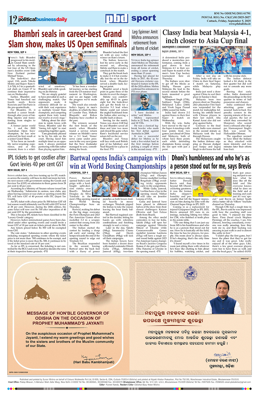 PbdOdisha ePaper Page: 12 September 05, 2025 9 10 11 12 Page 1Page 2Page 3Page 4Page 5Page 6Page 7Page 8Page 9Page 10Page 11Page 12 × PbdOdisha ePaper Page 1Page 2Page 3Page 4Page 5Page 6Page 7Page 8Page 9Page 10Page 11Page 12 << First << 12 >> Last >> Page no 1Page no 2Page no 3Page no 4Page no 5Page no 6Page no 7Page no 8Page no 9Page no 10Page no 11Page no 12