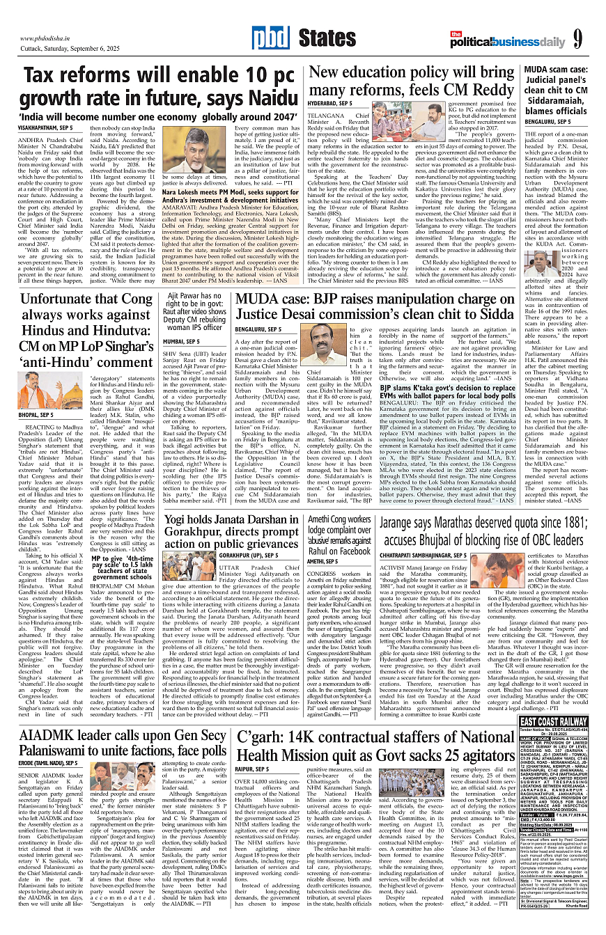 PbdOdisha ePaper Page: 9 September 06, 2025 7 8 9 10 Page 1Page 2Page 3Page 4Page 5Page 6Page 7Page 8Page 9Page 10Page 11Page 12 × PbdOdisha ePaper Page 1Page 2Page 3Page 4Page 5Page 6Page 7Page 8Page 9Page 10Page 11Page 12 << First << 9 >> Last >> Page no 1Page no 2Page no 3Page no 4Page no 5Page no 6Page no 7Page no 8Page no 9Page no 10Page no 11Page no 12