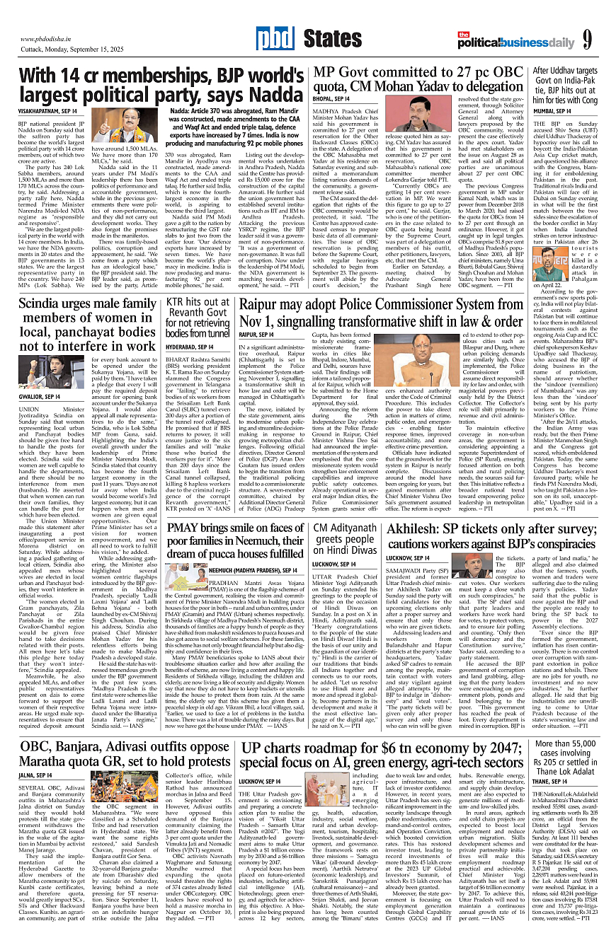 PbdOdisha ePaper Page: 9 September 15, 2025 7 8 9 10 Page 1Page 2Page 3Page 4Page 5Page 6Page 7Page 8Page 9Page 10Page 11Page 12 × PbdOdisha ePaper Page 1Page 2Page 3Page 4Page 5Page 6Page 7Page 8Page 9Page 10Page 11Page 12 << First << 9 >> Last >> Page no 1Page no 2Page no 3Page no 4Page no 5Page no 6Page no 7Page no 8Page no 9Page no 10Page no 11Page no 12
