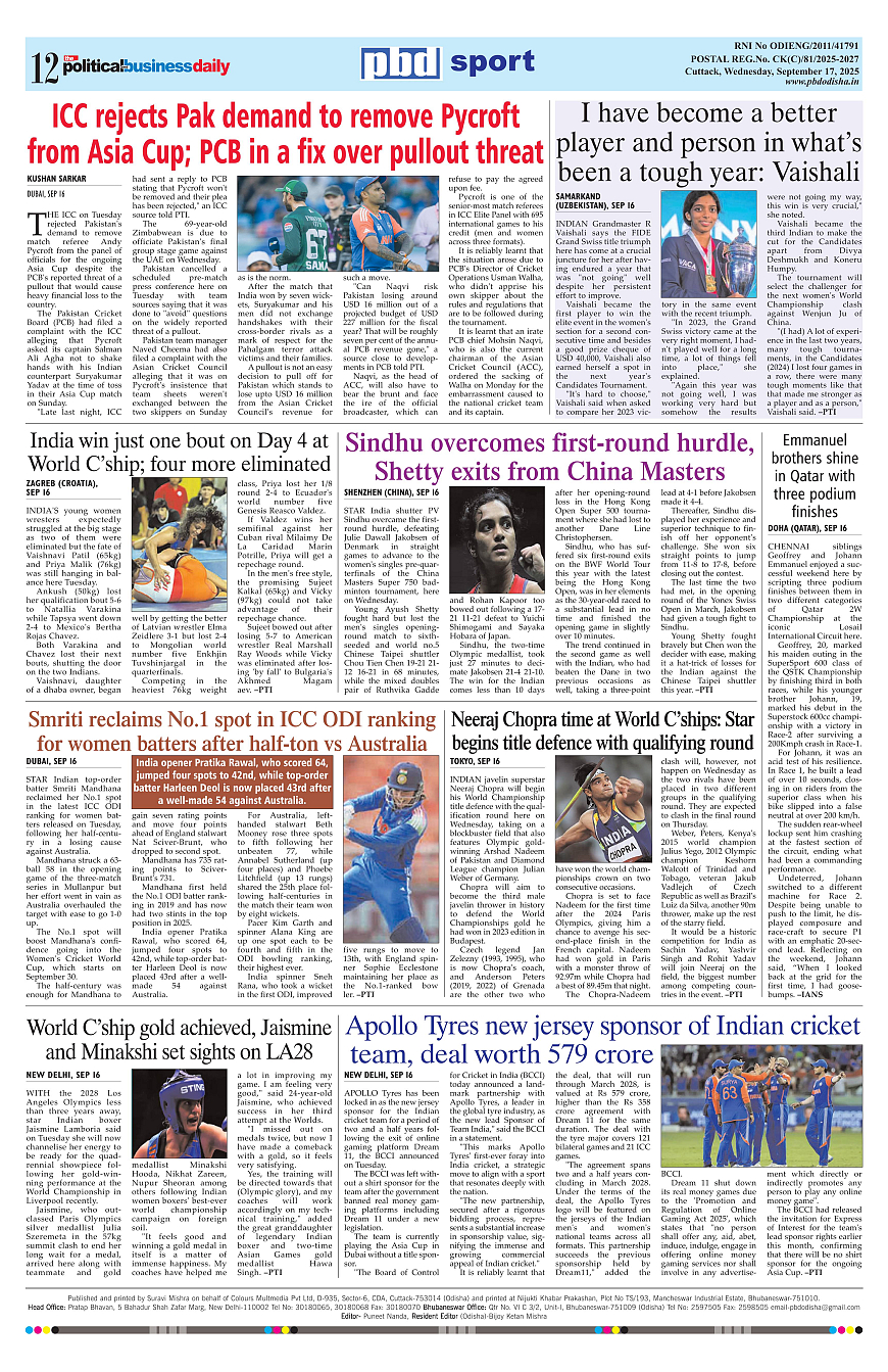 PbdOdisha ePaper Page: 12 September 17, 2025 9 10 11 12 Page 1Page 2Page 3Page 4Page 5Page 6Page 7Page 8Page 9Page 10Page 11Page 12 × PbdOdisha ePaper Page 1Page 2Page 3Page 4Page 5Page 6Page 7Page 8Page 9Page 10Page 11Page 12 << First << 12 >> Last >> Page no 1Page no 2Page no 3Page no 4Page no 5Page no 6Page no 7Page no 8Page no 9Page no 10Page no 11Page no 12