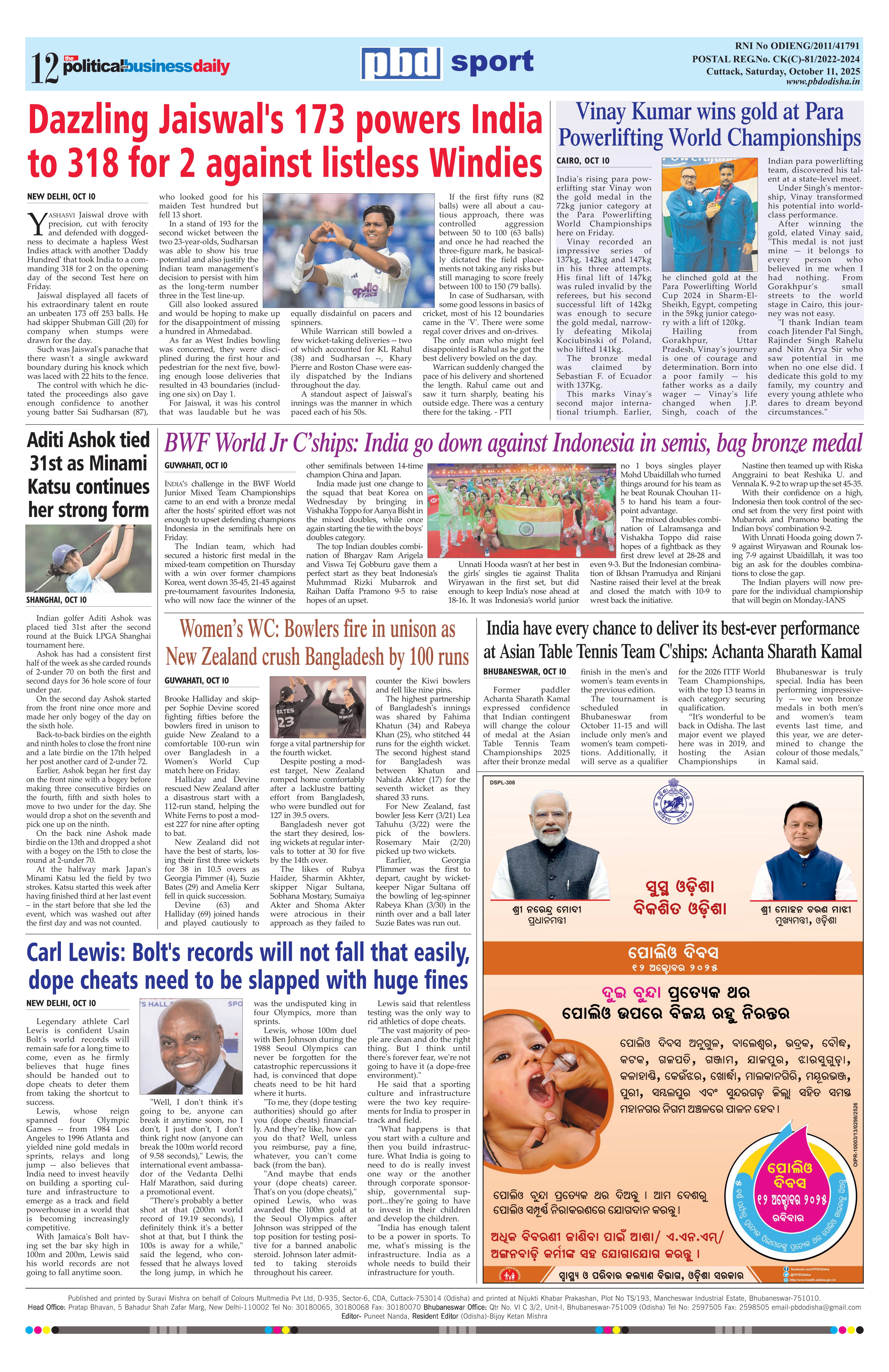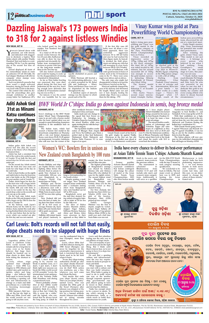 PbdOdisha ePaper Page: 12 October 11, 2025 9 10 11 12 Page 1Page 2Page 3Page 4Page 5Page 6Page 7Page 8Page 9Page 10Page 11Page 12 × PbdOdisha ePaper Page 1Page 2Page 3Page 4Page 5Page 6Page 7Page 8Page 9Page 10Page 11Page 12 << First << 12 >> Last >> Page no 1Page no 2Page no 3Page no 4Page no 5Page no 6Page no 7Page no 8Page no 9Page no 10Page no 11Page no 12
