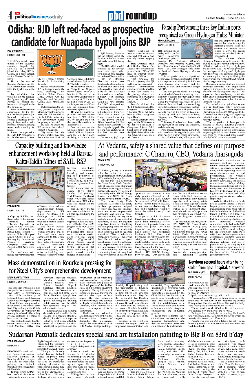 PbdOdisha ePaper Page: 4 October 12, 2025 2 3 4 5 Page 1Page 2Page 3Page 4Page 5Page 6Page 7Page 8Page 9Page 10Page 11Page 12 × PbdOdisha ePaper Page 1Page 2Page 3Page 4Page 5Page 6Page 7Page 8Page 9Page 10Page 11Page 12 << First << 4 >> Last >> Page no 1Page no 2Page no 3Page no 4Page no 5Page no 6Page no 7Page no 8Page no 9Page no 10Page no 11Page no 12