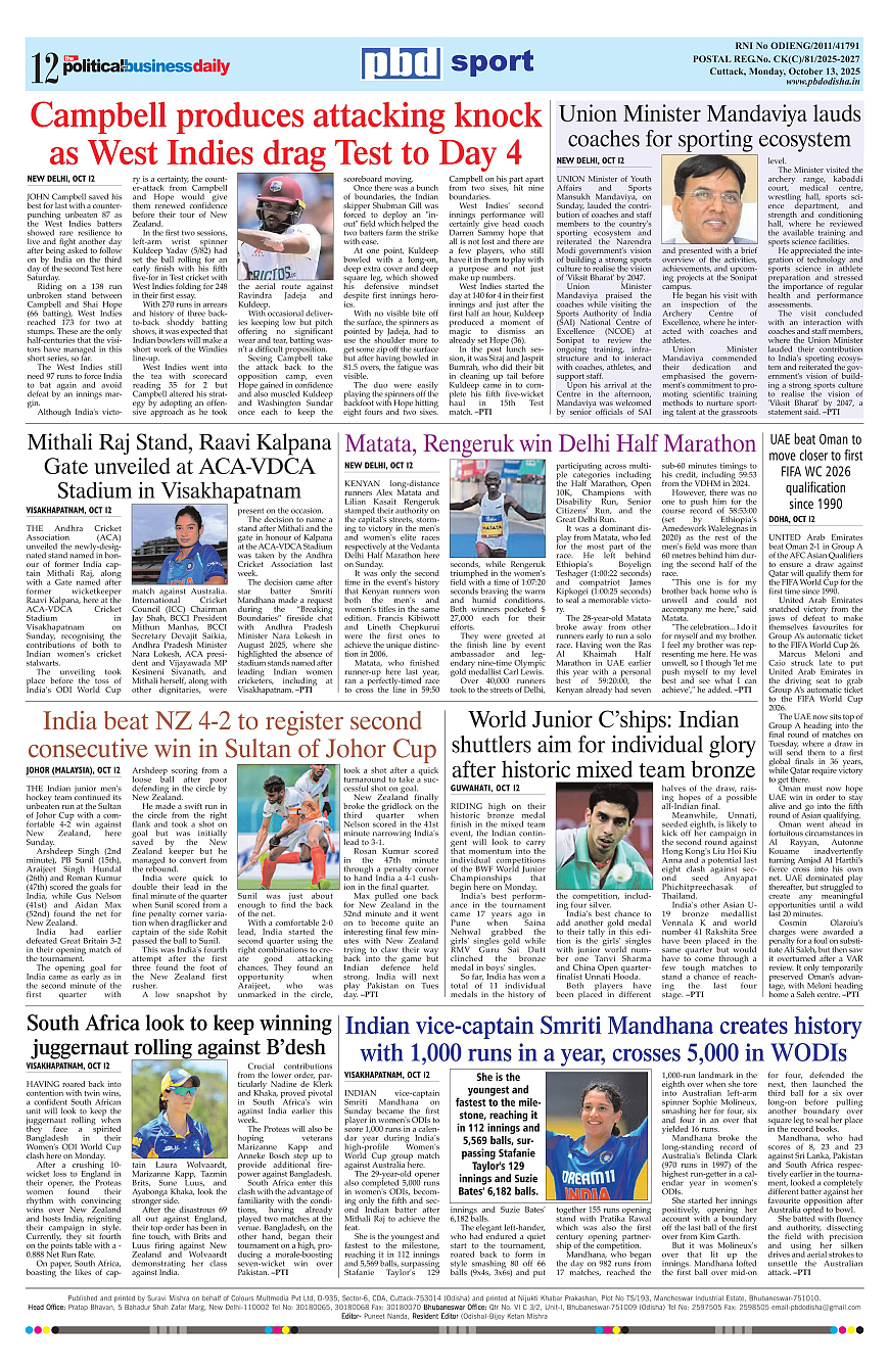 PbdOdisha ePaper Page: 12 October 13, 2025 9 10 11 12 Page 1Page 2Page 3Page 4Page 5Page 6Page 7Page 8Page 9Page 10Page 11Page 12 × PbdOdisha ePaper Page 1Page 2Page 3Page 4Page 5Page 6Page 7Page 8Page 9Page 10Page 11Page 12 << First << 12 >> Last >> Page no 1Page no 2Page no 3Page no 4Page no 5Page no 6Page no 7Page no 8Page no 9Page no 10Page no 11Page no 12