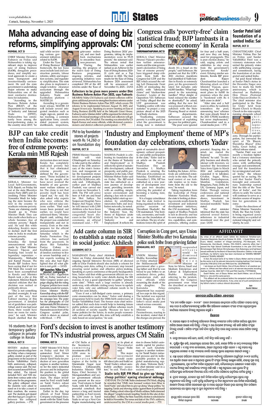 PbdOdisha ePaper Page: 9 November 01, 2025 7 8 9 10 Page 1Page 2Page 3Page 4Page 5Page 6Page 7Page 8Page 9Page 10Page 11Page 12 × PbdOdisha ePaper Page 1Page 2Page 3Page 4Page 5Page 6Page 7Page 8Page 9Page 10Page 11Page 12 << First << 9 >> Last >> Page no 1Page no 2Page no 3Page no 4Page no 5Page no 6Page no 7Page no 8Page no 9Page no 10Page no 11Page no 12