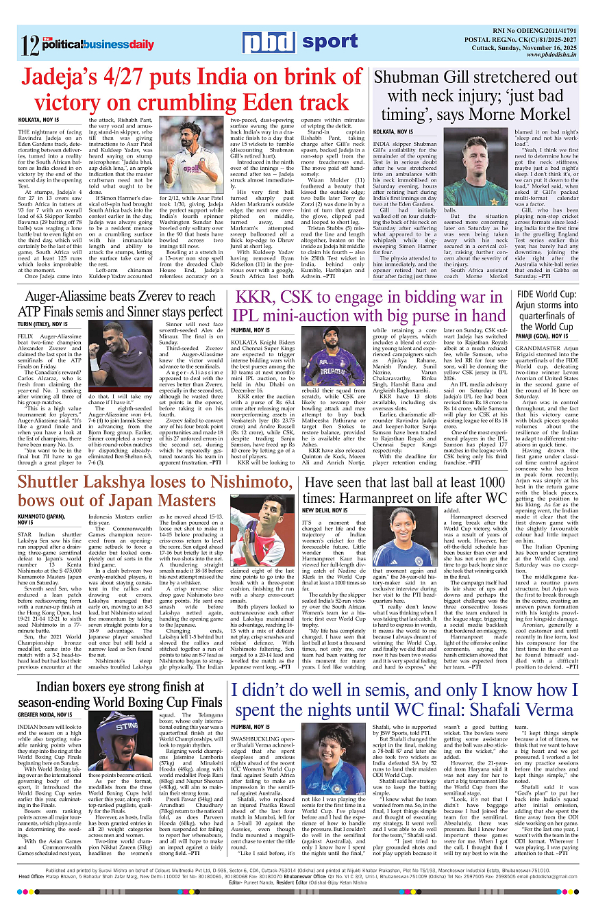 PbdOdisha ePaper Page: 12 November 16, 2025 9 10 11 12 Page 1Page 2Page 3Page 4Page 5Page 6Page 7Page 8Page 9Page 10Page 11Page 12 × PbdOdisha ePaper Page 1Page 2Page 3Page 4Page 5Page 6Page 7Page 8Page 9Page 10Page 11Page 12 << First << 12 >> Last >> Page no 1Page no 2Page no 3Page no 4Page no 5Page no 6Page no 7Page no 8Page no 9Page no 10Page no 11Page no 12