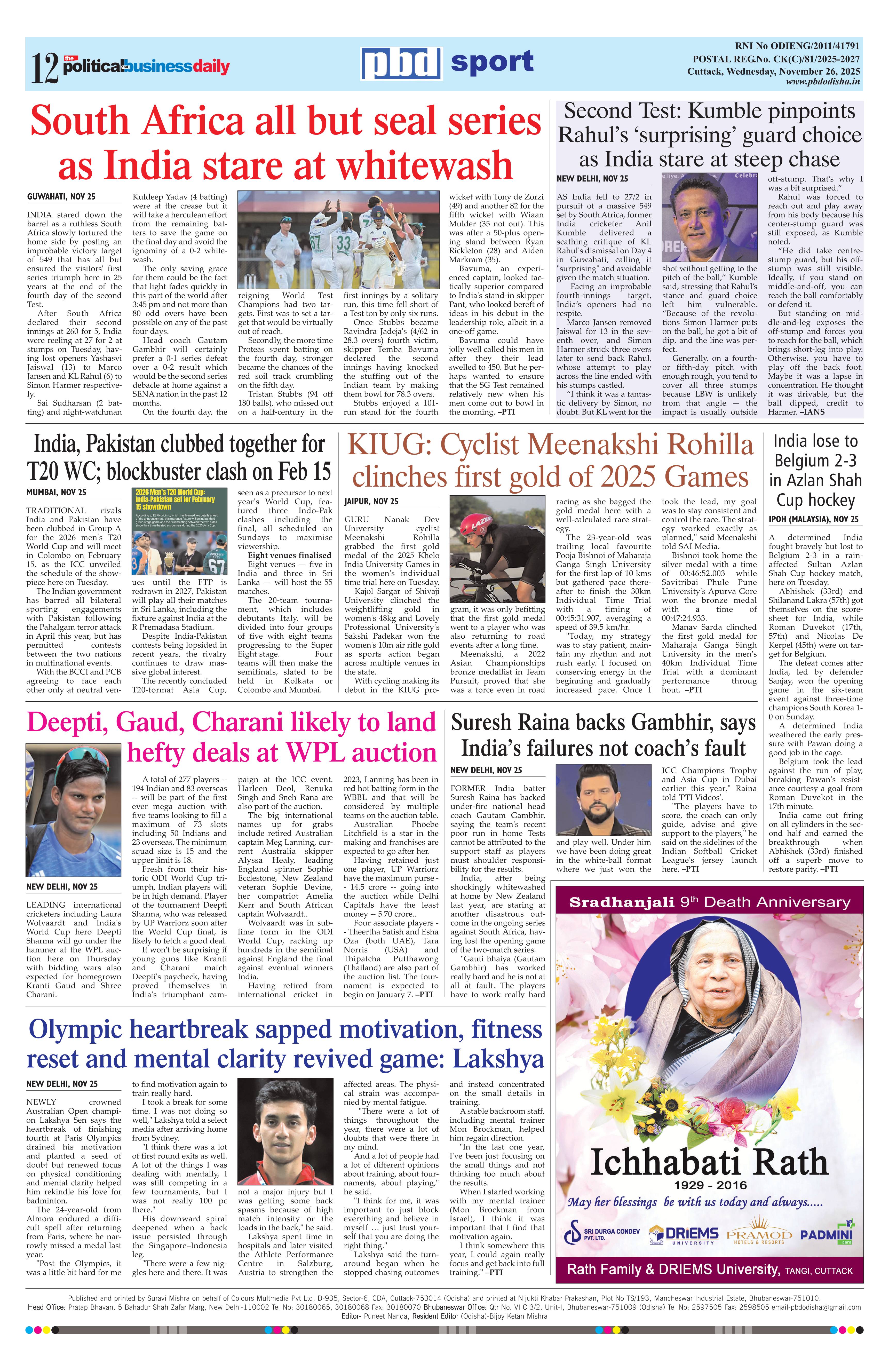 PbdOdisha ePaper Page: 12 November 26, 2025 9 10 11 12 Page 1Page 2Page 3Page 4Page 5Page 6Page 7Page 8Page 9Page 10Page 11Page 12 × PbdOdisha ePaper Page 1Page 2Page 3Page 4Page 5Page 6Page 7Page 8Page 9Page 10Page 11Page 12 << First << 12 >> Last >> Page no 1Page no 2Page no 3Page no 4Page no 5Page no 6Page no 7Page no 8Page no 9Page no 10Page no 11Page no 12