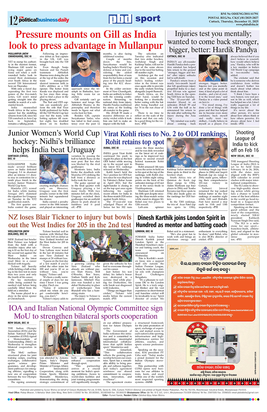 PbdOdisha ePaper Page: 12 December 11, 2025 9 10 11 12 Page 1Page 2Page 3Page 4Page 5Page 6Page 7Page 8Page 9Page 10Page 11Page 12 × PbdOdisha ePaper Page 1Page 2Page 3Page 4Page 5Page 6Page 7Page 8Page 9Page 10Page 11Page 12 << First << 12 >> Last >> Page no 1Page no 2Page no 3Page no 4Page no 5Page no 6Page no 7Page no 8Page no 9Page no 10Page no 11Page no 12