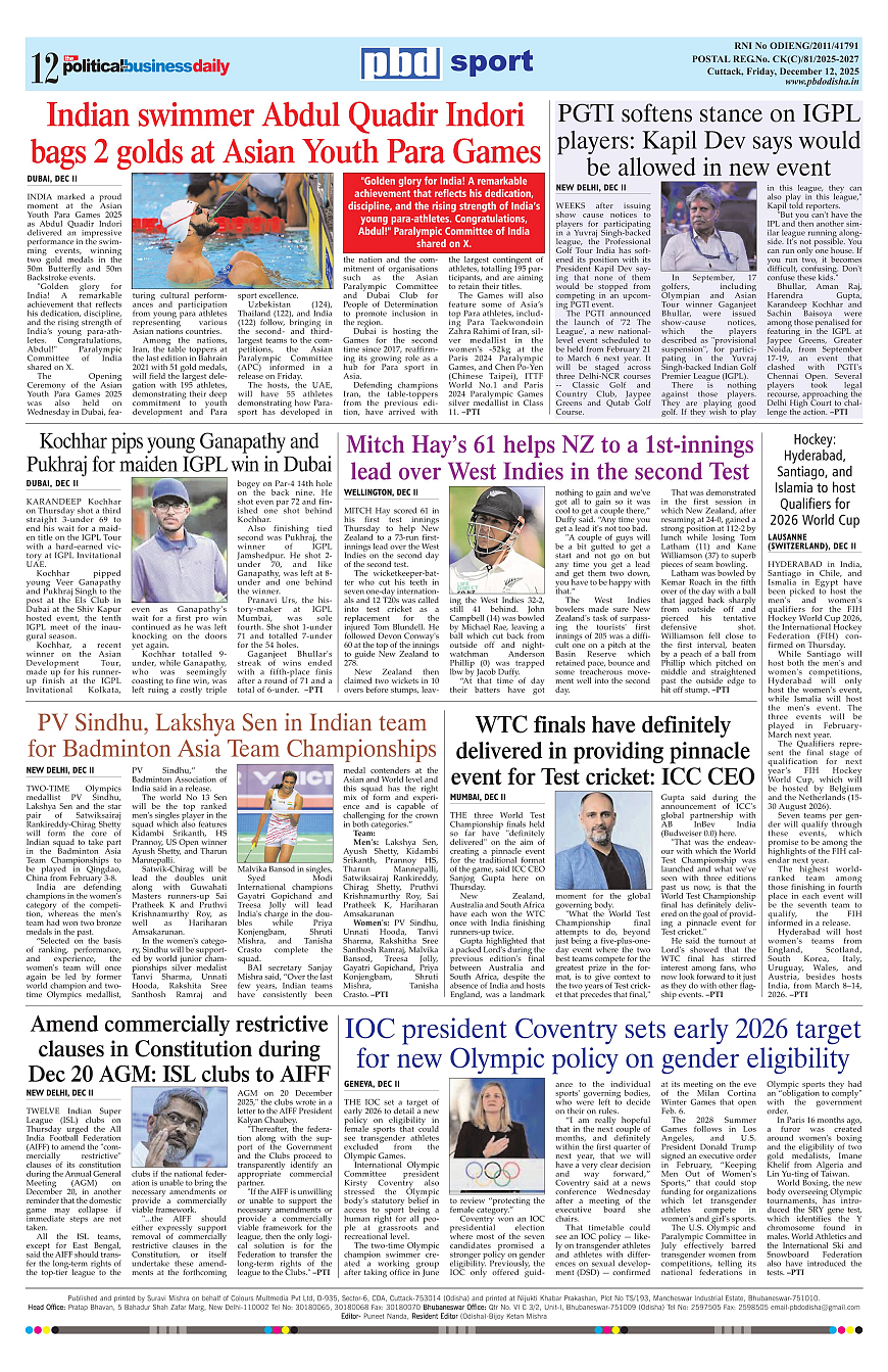 PbdOdisha ePaper Page: 12 December 12, 2025 9 10 11 12 Page 1Page 2Page 3Page 4Page 5Page 6Page 7Page 8Page 9Page 10Page 11Page 12 × PbdOdisha ePaper Page 1Page 2Page 3Page 4Page 5Page 6Page 7Page 8Page 9Page 10Page 11Page 12 << First << 12 >> Last >> Page no 1Page no 2Page no 3Page no 4Page no 5Page no 6Page no 7Page no 8Page no 9Page no 10Page no 11Page no 12