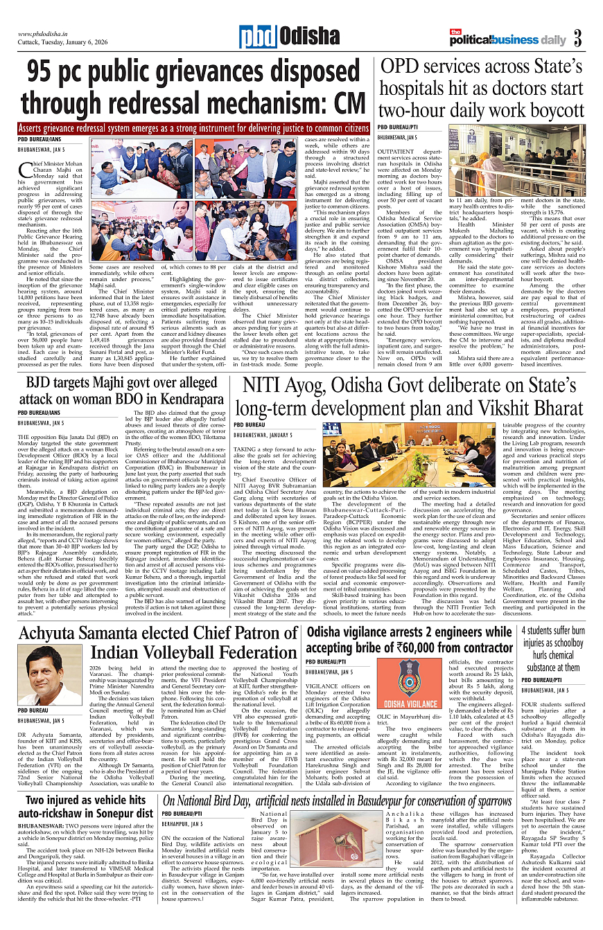 PbdOdisha ePaper Page: 3 January 06, 2026 1 2 3 4 Page 1Page 2Page 3Page 4Page 5Page 6Page 7Page 8Page 9Page 10Page 11Page 12 × PbdOdisha ePaper Page 1Page 2Page 3Page 4Page 5Page 6Page 7Page 8Page 9Page 10Page 11Page 12 << First << 3 >> Last >> Page no 1Page no 2Page no 3Page no 4Page no 5Page no 6Page no 7Page no 8Page no 9Page no 10Page no 11Page no 12