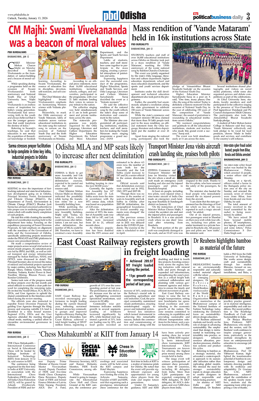 PbdOdisha ePaper Page: 3 January 13, 2026 1 2 3 4 Page 1Page 2Page 3Page 4Page 5Page 6Page 7Page 8Page 9Page 10Page 11Page 12 × PbdOdisha ePaper Page 1Page 2Page 3Page 4Page 5Page 6Page 7Page 8Page 9Page 10Page 11Page 12 << First << 3 >> Last >> Page no 1Page no 2Page no 3Page no 4Page no 5Page no 6Page no 7Page no 8Page no 9Page no 10Page no 11Page no 12