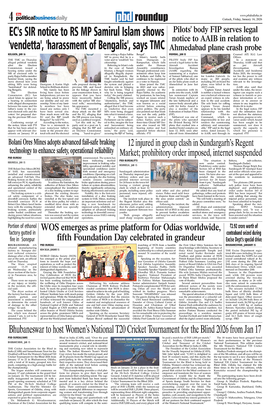 PbdOdisha ePaper Page: 4 January 16, 2026 2 3 4 5 Page 1Page 2Page 3Page 4Page 5Page 6Page 7Page 8Page 9Page 10Page 11Page 12 × PbdOdisha ePaper Page 1Page 2Page 3Page 4Page 5Page 6Page 7Page 8Page 9Page 10Page 11Page 12 << First << 4 >> Last >> Page no 1Page no 2Page no 3Page no 4Page no 5Page no 6Page no 7Page no 8Page no 9Page no 10Page no 11Page no 12