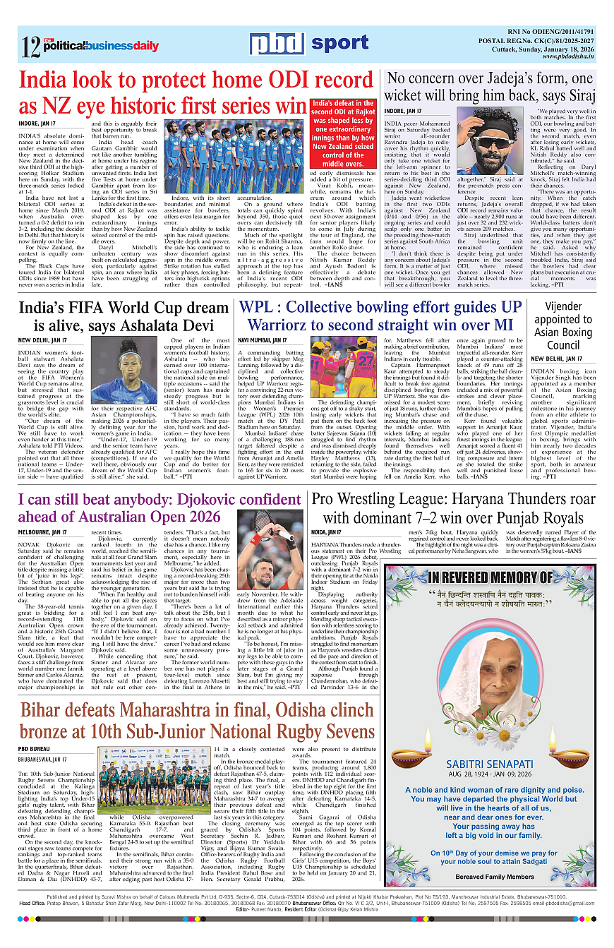 PbdOdisha ePaper Page: 12 January 18, 2026 9 10 11 12 Page 1Page 2Page 3Page 4Page 5Page 6Page 7Page 8Page 9Page 10Page 11Page 12 × PbdOdisha ePaper Page 1Page 2Page 3Page 4Page 5Page 6Page 7Page 8Page 9Page 10Page 11Page 12 << First << 12 >> Last >> Page no 1Page no 2Page no 3Page no 4Page no 5Page no 6Page no 7Page no 8Page no 9Page no 10Page no 11Page no 12