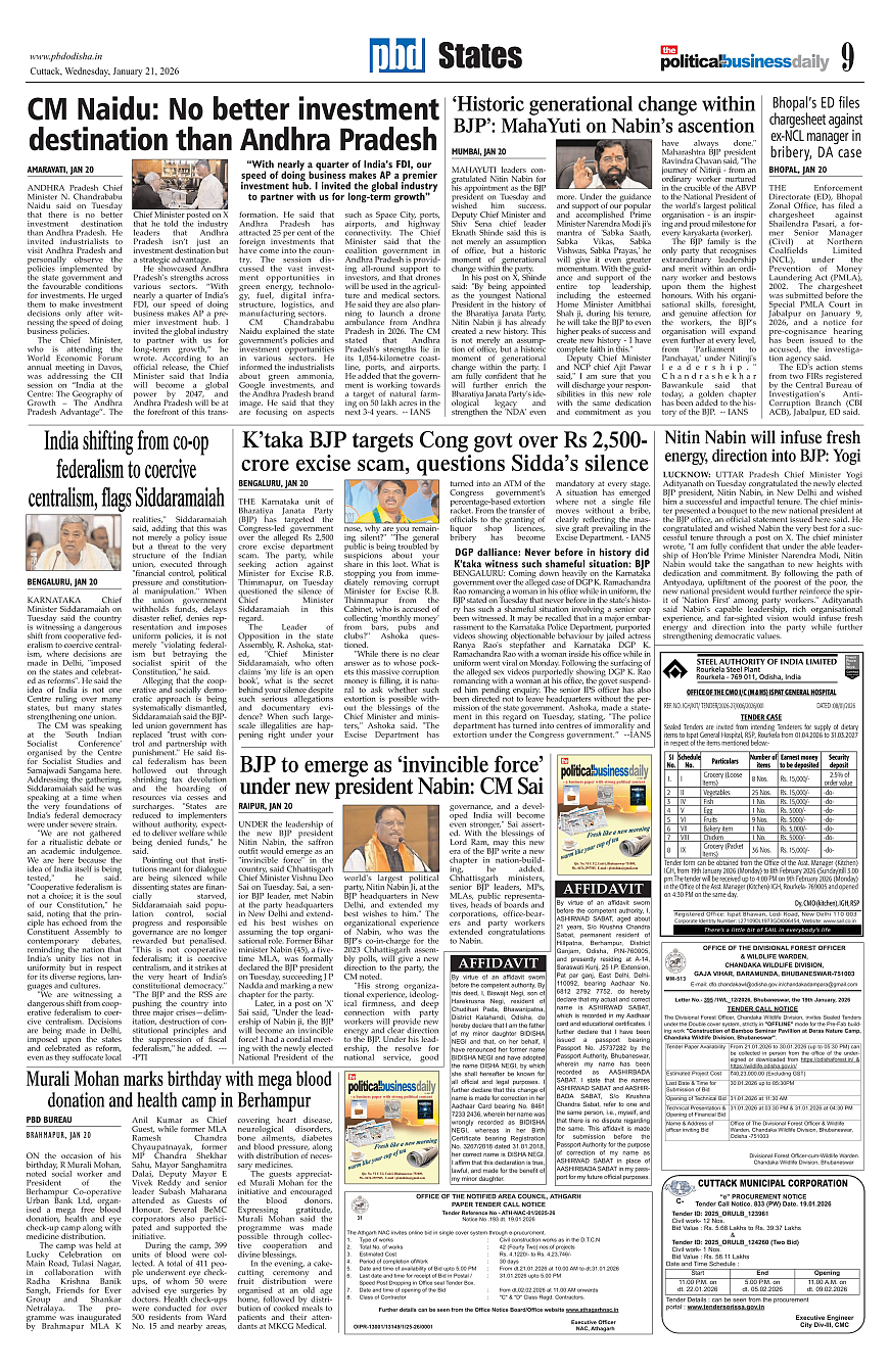 PbdOdisha ePaper Page: 9 January 21, 2026 7 8 9 10 Page 1Page 2Page 3Page 4Page 5Page 6Page 7Page 8Page 9Page 10Page 11Page 12 × PbdOdisha ePaper Page 1Page 2Page 3Page 4Page 5Page 6Page 7Page 8Page 9Page 10Page 11Page 12 << First << 9 >> Last >> Page no 1Page no 2Page no 3Page no 4Page no 5Page no 6Page no 7Page no 8Page no 9Page no 10Page no 11Page no 12