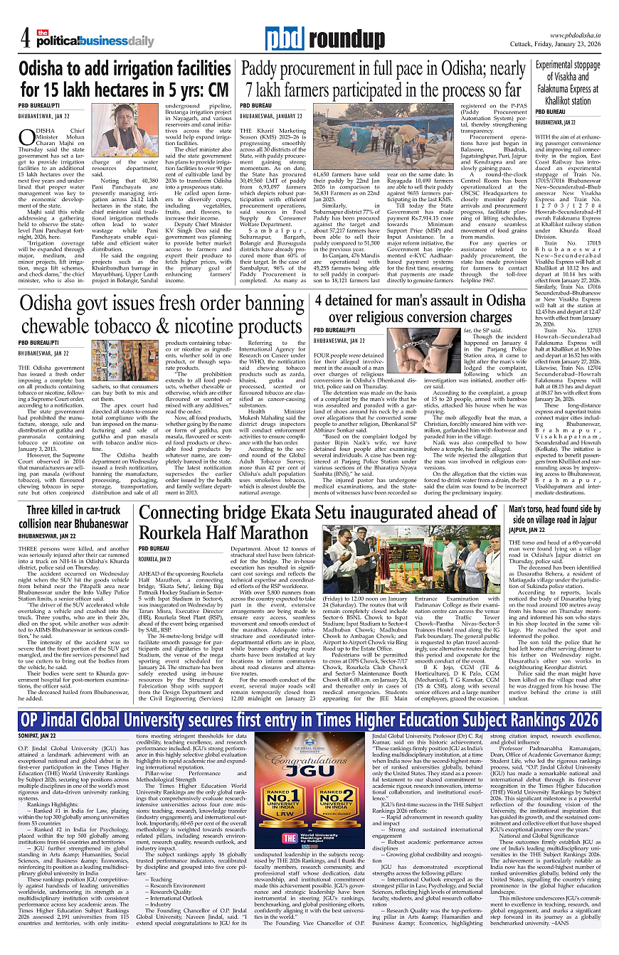 PbdOdisha ePaper Page: 4 January 23, 2026 2 3 4 5 Page 1Page 2Page 3Page 4Page 5Page 6Page 7Page 8Page 9Page 10Page 11Page 12 × PbdOdisha ePaper Page 1Page 2Page 3Page 4Page 5Page 6Page 7Page 8Page 9Page 10Page 11Page 12 << First << 4 >> Last >> Page no 1Page no 2Page no 3Page no 4Page no 5Page no 6Page no 7Page no 8Page no 9Page no 10Page no 11Page no 12