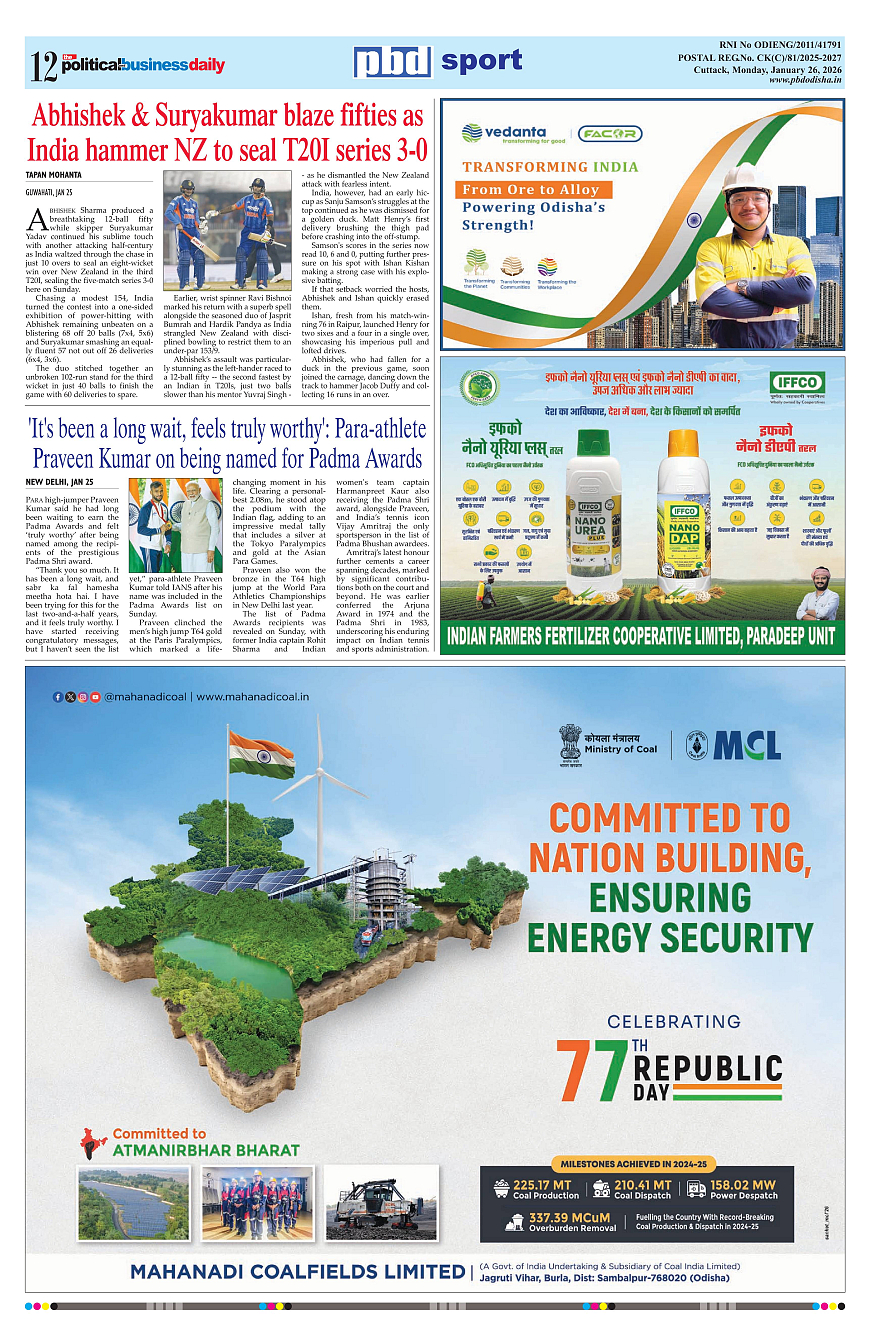 PbdOdisha ePaper Page: 12 January 26, 2026 9 10 11 12 Page 1Page 2Page 3Page 4Page 5Page 6Page 7Page 8Page 9Page 10Page 11Page 12 × PbdOdisha ePaper Page 1Page 2Page 3Page 4Page 5Page 6Page 7Page 8Page 9Page 10Page 11Page 12 << First << 12 >> Last >> Page no 1Page no 2Page no 3Page no 4Page no 5Page no 6Page no 7Page no 8Page no 9Page no 10Page no 11Page no 12