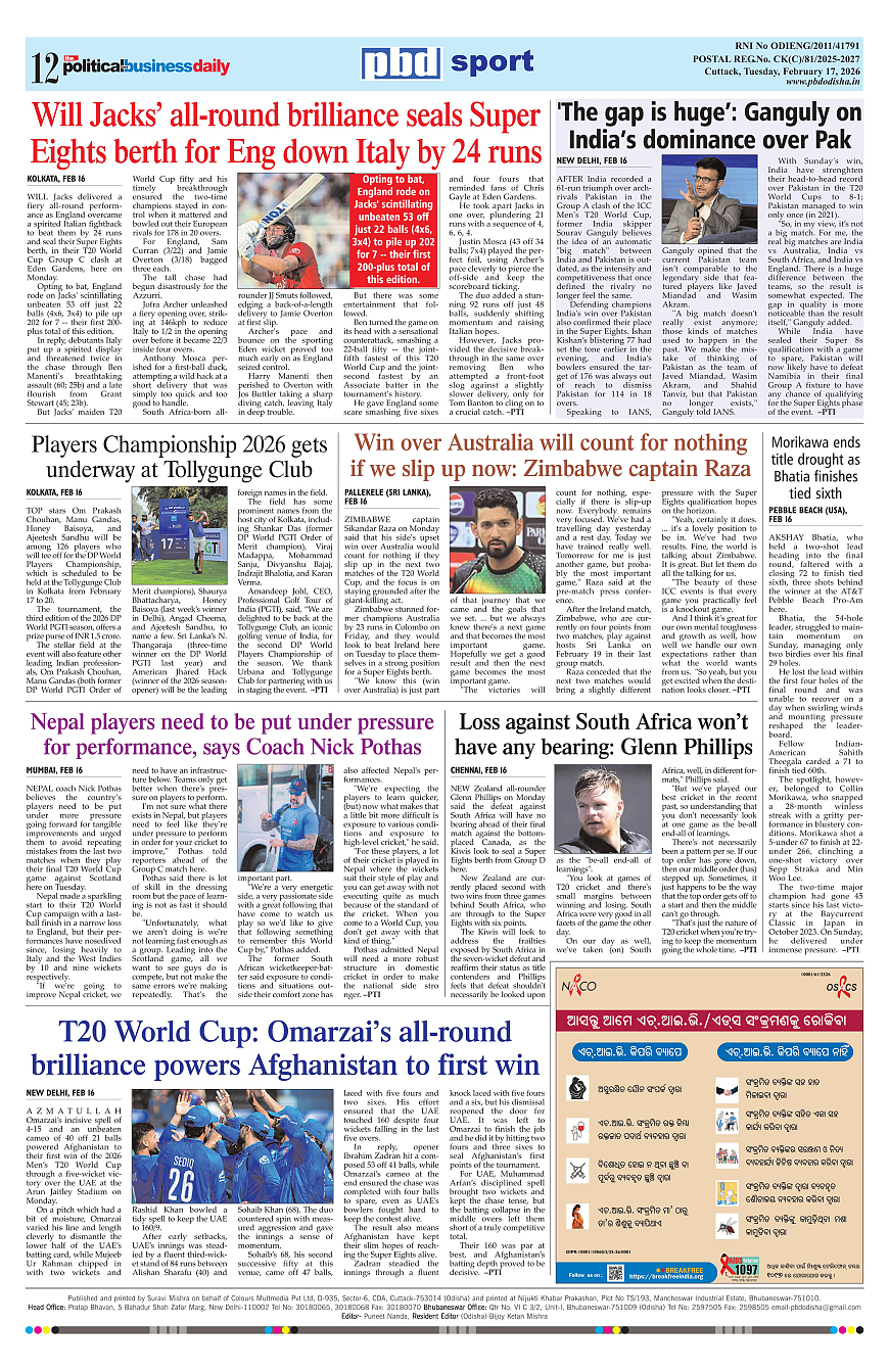 PbdOdisha ePaper Page: 12 February 17, 2026 9 10 11 12 Page 1Page 2Page 3Page 4Page 5Page 6Page 7Page 8Page 9Page 10Page 11Page 12 × PbdOdisha ePaper Page 1Page 2Page 3Page 4Page 5Page 6Page 7Page 8Page 9Page 10Page 11Page 12 << First << 12 >> Last >> Page no 1Page no 2Page no 3Page no 4Page no 5Page no 6Page no 7Page no 8Page no 9Page no 10Page no 11Page no 12