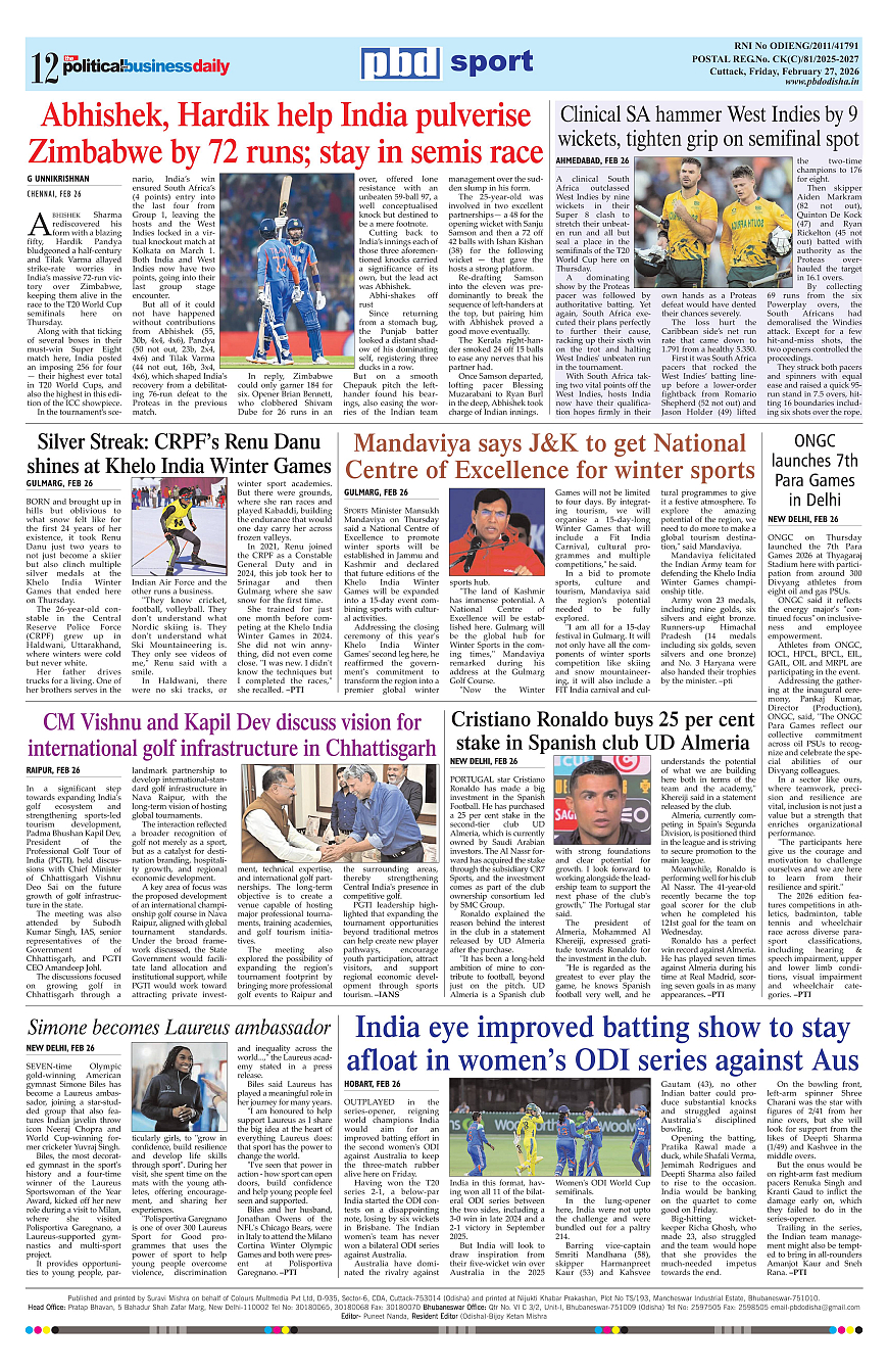 PbdOdisha ePaper Page: 12 February 27, 2026 9 10 11 12 Page 1Page 2Page 3Page 4Page 5Page 6Page 7Page 8Page 9Page 10Page 11Page 12 × PbdOdisha ePaper Page 1Page 2Page 3Page 4Page 5Page 6Page 7Page 8Page 9Page 10Page 11Page 12 << First << 12 >> Last >> Page no 1Page no 2Page no 3Page no 4Page no 5Page no 6Page no 7Page no 8Page no 9Page no 10Page no 11Page no 12