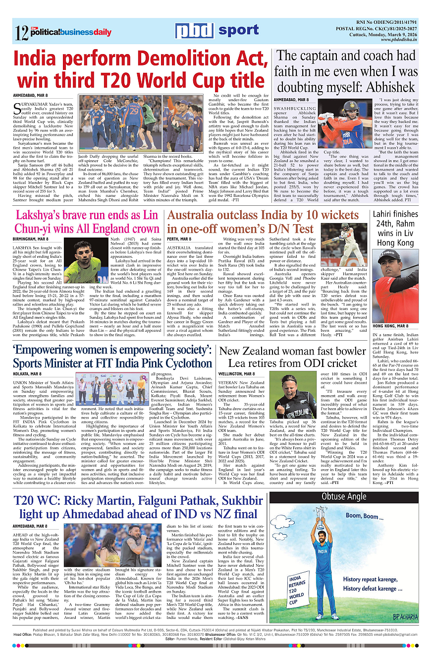 PbdOdisha ePaper Page: 12 March 09, 2026 9 10 11 12 Page 1Page 2Page 3Page 4Page 5Page 6Page 7Page 8Page 9Page 10Page 11Page 12 × PbdOdisha ePaper Page 1Page 2Page 3Page 4Page 5Page 6Page 7Page 8Page 9Page 10Page 11Page 12 << First << 12 >> Last >> Page no 1Page no 2Page no 3Page no 4Page no 5Page no 6Page no 7Page no 8Page no 9Page no 10Page no 11Page no 12