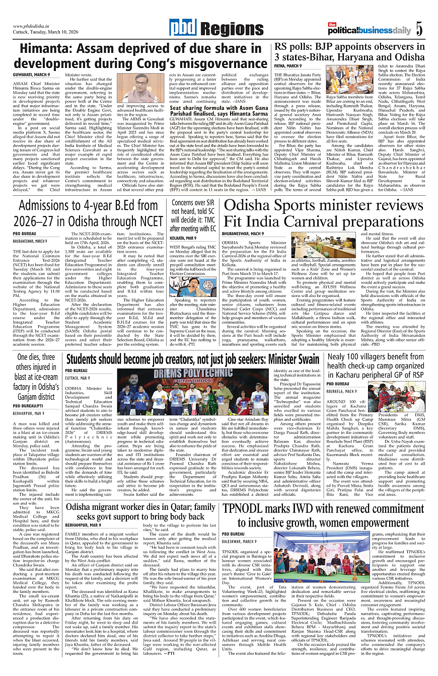 PbdOdisha ePaper Page: 5 March 10, 2026 3 4 5 6 Page 1Page 2Page 3Page 4Page 5Page 6Page 7Page 8Page 9Page 10Page 11Page 12 × PbdOdisha ePaper Page 1Page 2Page 3Page 4Page 5Page 6Page 7Page 8Page 9Page 10Page 11Page 12 << First << 5 >> Last >> Page no 1Page no 2Page no 3Page no 4Page no 5Page no 6Page no 7Page no 8Page no 9Page no 10Page no 11Page no 12