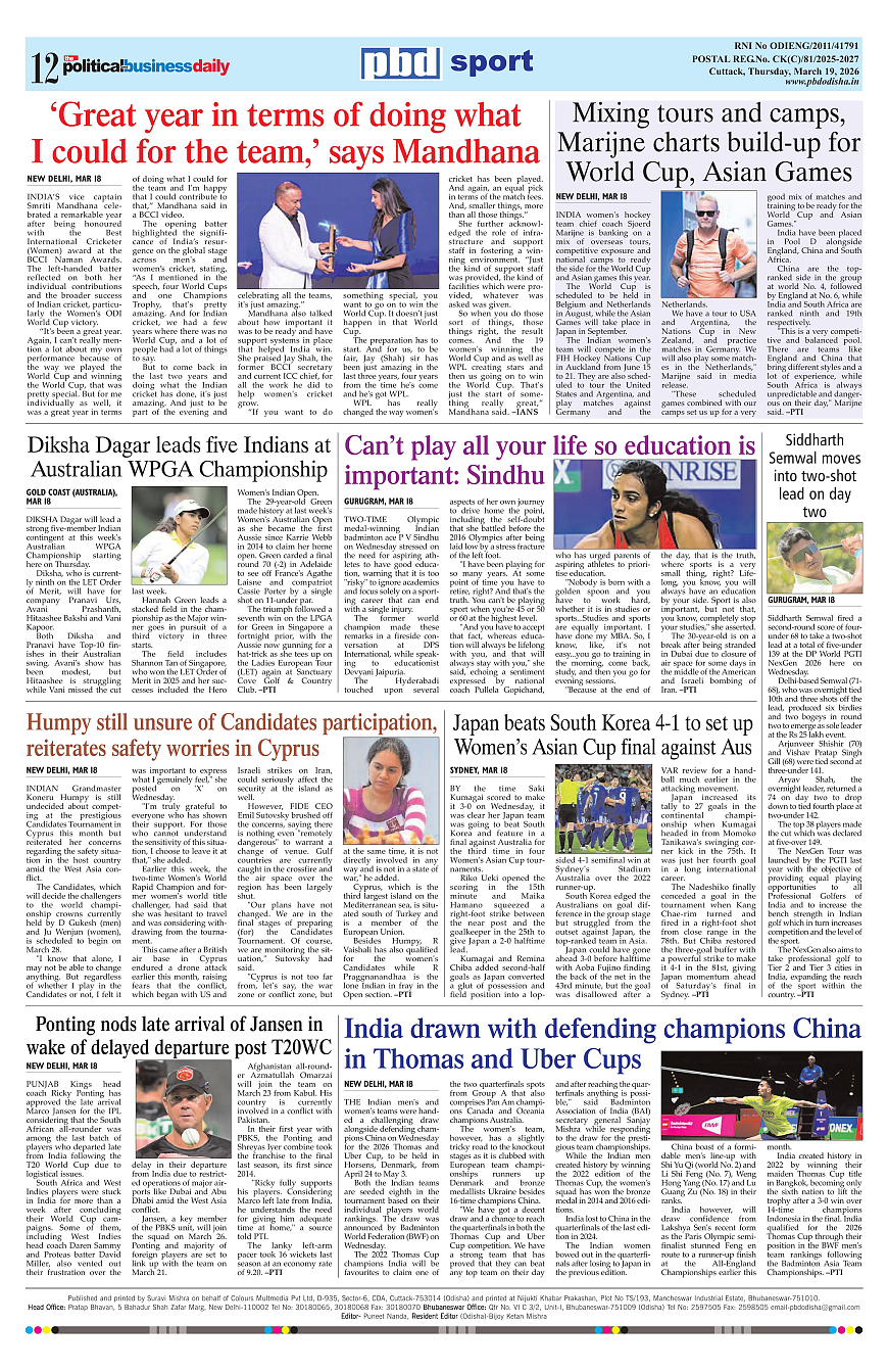 PbdOdisha ePaper Page: 12 March 19, 2026 9 10 11 12 Page 1Page 2Page 3Page 4Page 5Page 6Page 7Page 8Page 9Page 10Page 11Page 12 × PbdOdisha ePaper Page 1Page 2Page 3Page 4Page 5Page 6Page 7Page 8Page 9Page 10Page 11Page 12 << First << 12 >> Last >> Page no 1Page no 2Page no 3Page no 4Page no 5Page no 6Page no 7Page no 8Page no 9Page no 10Page no 11Page no 12