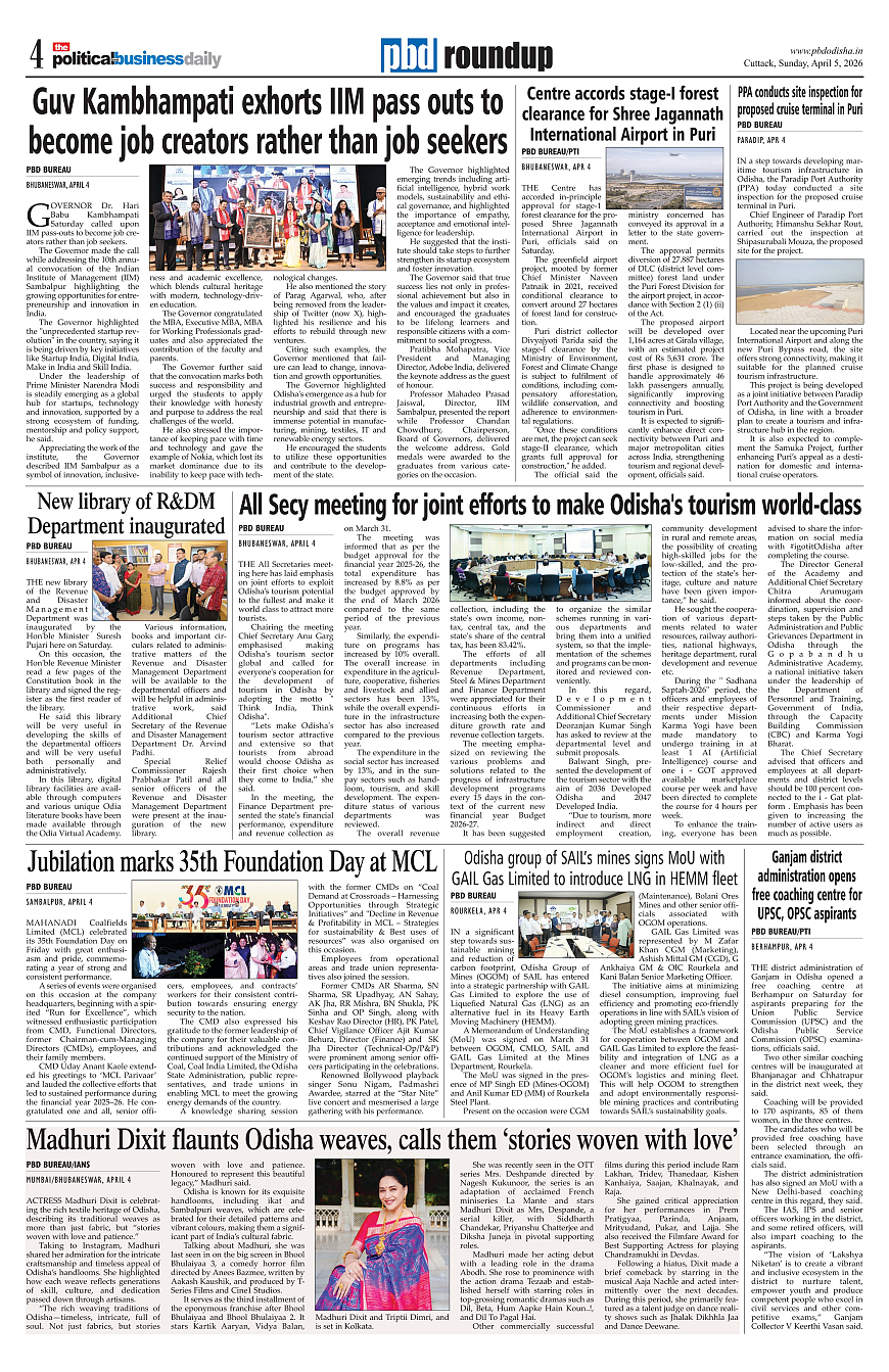 PbdOdisha 5th April 2026 ePaper Page: 4 April 05, 2026 2 3 4 5 Page 1Page 2Page 3Page 4Page 5Page 6Page 7Page 8Page 9Page 10Page 11Page 12 × PbdOdisha 5th April 2026 ePaper Page 1Page 2Page 3Page 4Page 5Page 6Page 7Page 8Page 9Page 10Page 11Page 12 << First << 4 >> Last >> Page no 1Page no 2Page no 3Page no 4Page no 5Page no 6Page no 7Page no 8Page no 9Page no 10Page no 11Page no 12