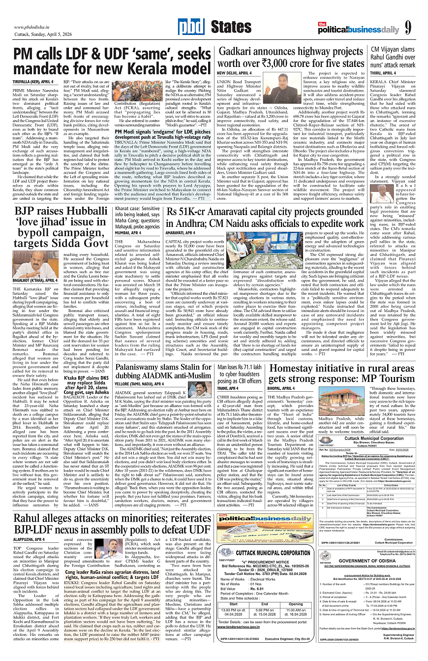 PbdOdisha 5th April 2026 ePaper Page: 9 April 05, 2026 7 8 9 10 Page 1Page 2Page 3Page 4Page 5Page 6Page 7Page 8Page 9Page 10Page 11Page 12 × PbdOdisha 5th April 2026 ePaper Page 1Page 2Page 3Page 4Page 5Page 6Page 7Page 8Page 9Page 10Page 11Page 12 << First << 9 >> Last >> Page no 1Page no 2Page no 3Page no 4Page no 5Page no 6Page no 7Page no 8Page no 9Page no 10Page no 11Page no 12