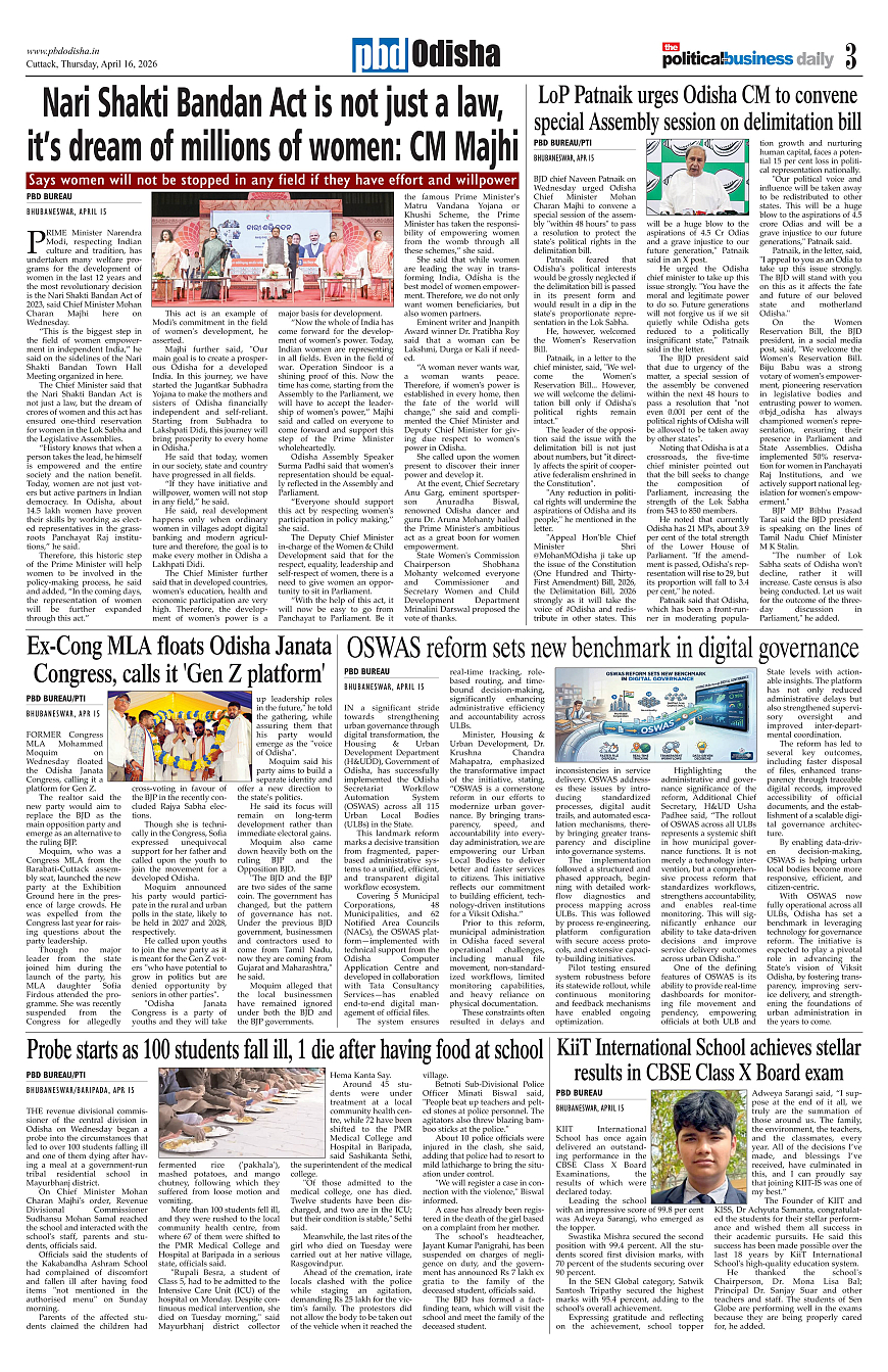 PbdOdisha 16th April 2026 ePaper Page: 3 April 16, 2026 PbdOdisha 16th April 2026 ePaper 1 2 3 4 Page 1Page 2Page 3Page 4Page 5Page 6Page 7Page 8Page 9Page 10Page 11Page 12 × PbdOdisha 16th April 2026 ePaper Page 1Page 2Page 3Page 4Page 5Page 6Page 7Page 8Page 9Page 10Page 11Page 12 << First << 3 >> Last >> Page no 1Page no 2Page no 3Page no 4Page no 5Page no 6Page no 7Page no 8Page no 9Page no 10Page no 11Page no 12