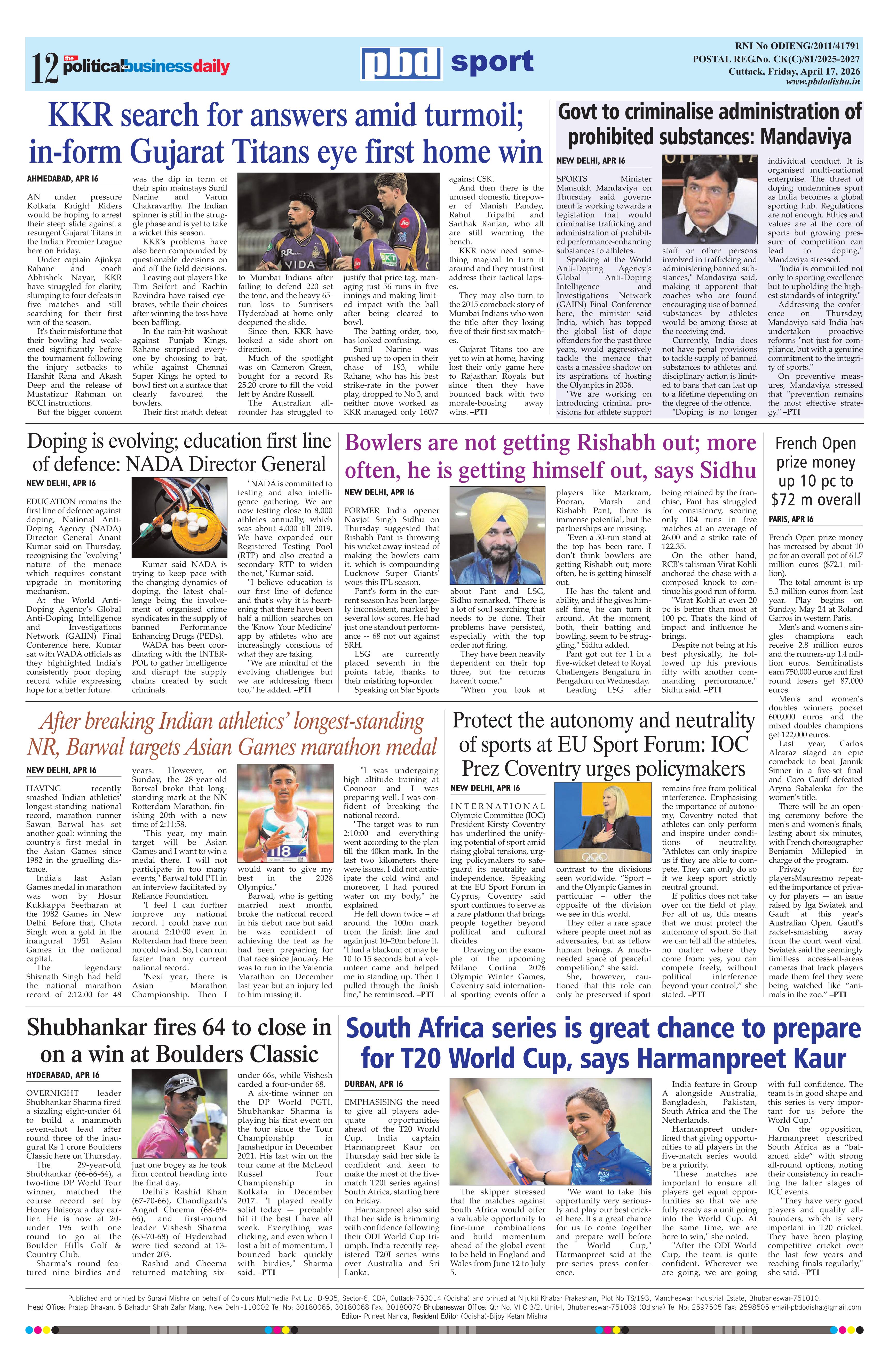 PbdOdisha 17th April 2026 ePaper Page: 12 April 17, 2026 PbdOdisha 17th April 2026 ePaper 9 10 11 12 Page 1Page 2Page 3Page 4Page 5Page 6Page 7Page 8Page 9Page 10Page 11Page 12 × PbdOdisha 17th April 2026 ePaper Page 1Page 2Page 3Page 4Page 5Page 6Page 7Page 8Page 9Page 10Page 11Page 12 << First << 12 >> Last >> Page no 1Page no 2Page no 3Page no 4Page no 5Page no 6Page no 7Page no 8Page no 9Page no 10Page no 11Page no 12