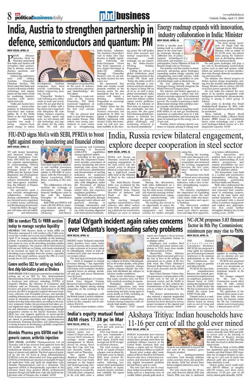 PbdOdisha 17th April 2026 ePaper Page: 8 April 17, 2026 PbdOdisha 17th April 2026 ePaper 6 7 8 9 Page 1Page 2Page 3Page 4Page 5Page 6Page 7Page 8Page 9Page 10Page 11Page 12 × PbdOdisha 17th April 2026 ePaper Page 1Page 2Page 3Page 4Page 5Page 6Page 7Page 8Page 9Page 10Page 11Page 12 << First << 8 >> Last >> Page no 1Page no 2Page no 3Page no 4Page no 5Page no 6Page no 7Page no 8Page no 9Page no 10Page no 11Page no 12