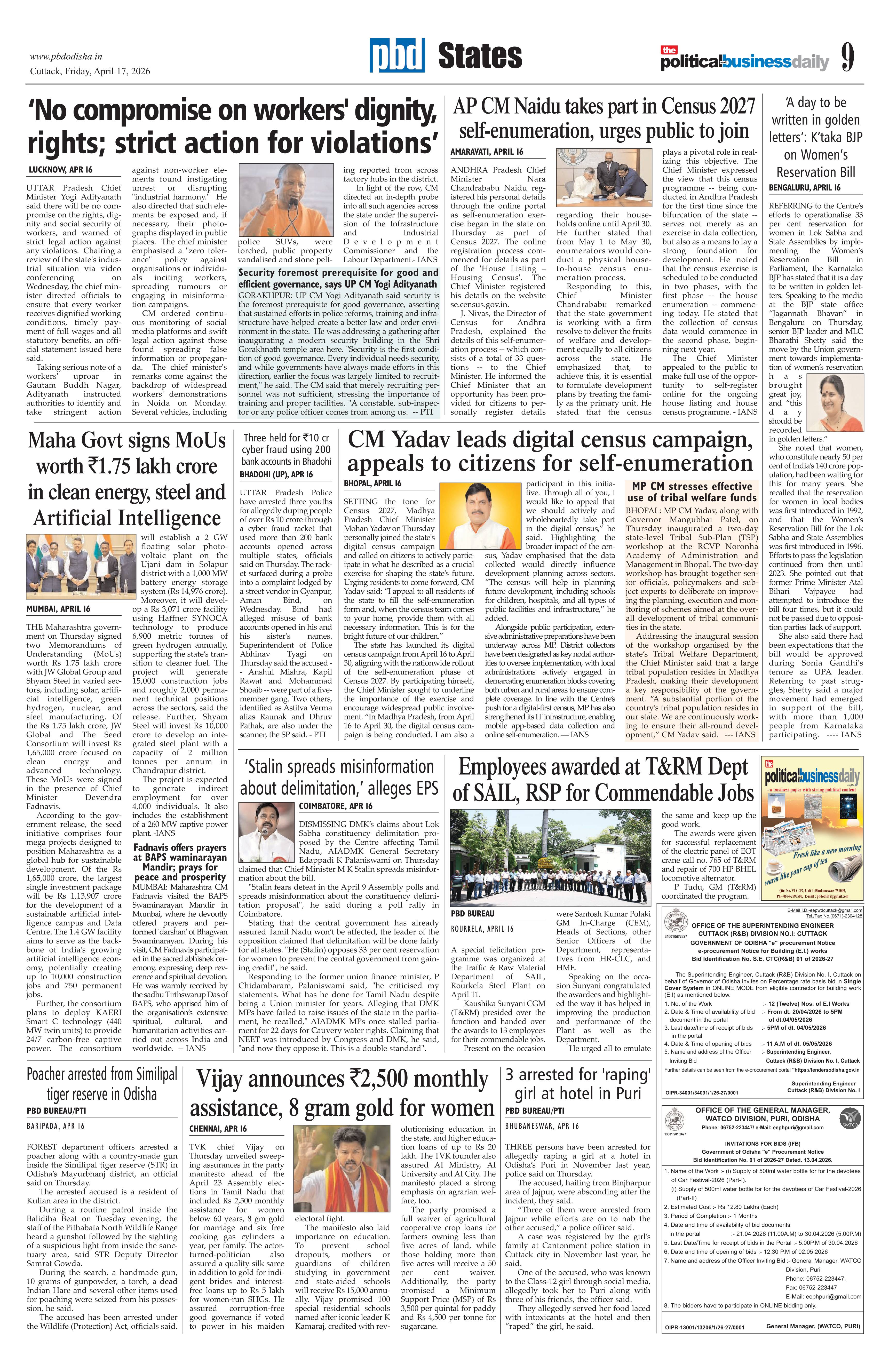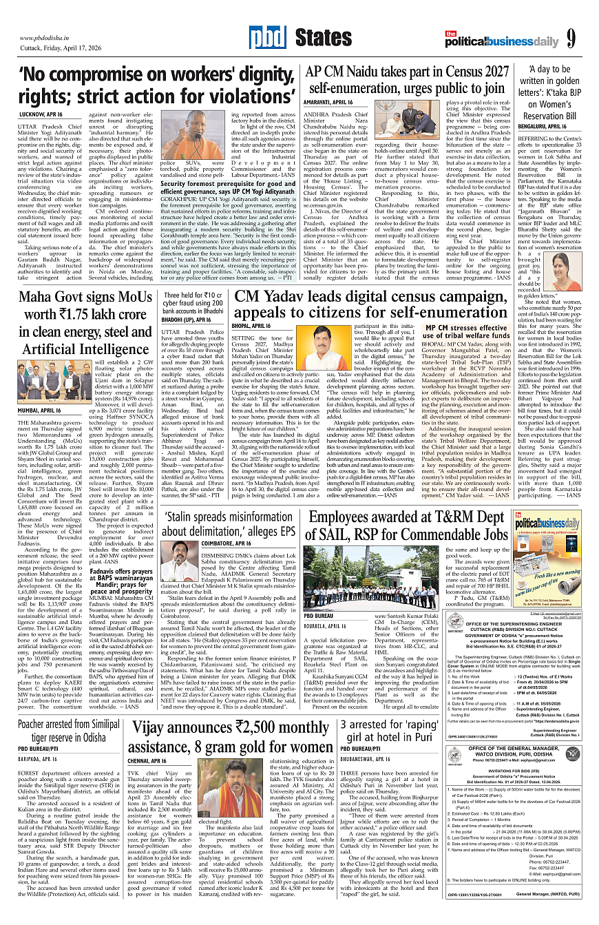 PbdOdisha 17th April 2026 ePaper Page: 9 April 17, 2026 PbdOdisha 17th April 2026 ePaper 7 8 9 10 Page 1Page 2Page 3Page 4Page 5Page 6Page 7Page 8Page 9Page 10Page 11Page 12 × PbdOdisha 17th April 2026 ePaper Page 1Page 2Page 3Page 4Page 5Page 6Page 7Page 8Page 9Page 10Page 11Page 12 << First << 9 >> Last >> Page no 1Page no 2Page no 3Page no 4Page no 5Page no 6Page no 7Page no 8Page no 9Page no 10Page no 11Page no 12